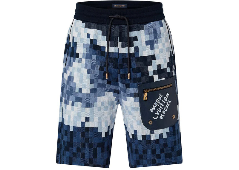 The Louis Vuitton Hybrid Leather and Cotton Damier Shorts Blue Damoflage Damier is now available at Side Kicks!