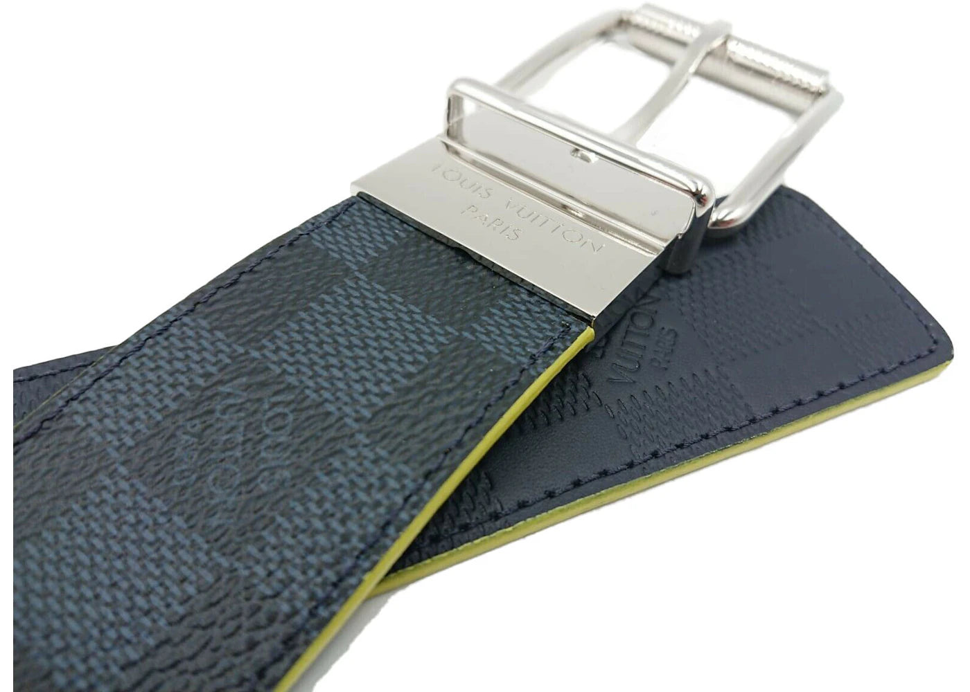 The Louis Vuitton Reversible Belt Damier Cobalt/Infini America's Cup 40MM Yellow is now available at Side Kicks!
