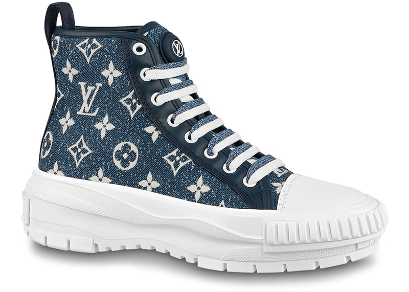 The Louis Vuitton Squad Boot Monogram Denim Navy Blue White (Women's) is now available at Side Kicks!