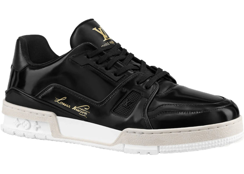The Louis Vuitton Trainer Black Glazed Signature is now available at Side Kicks!