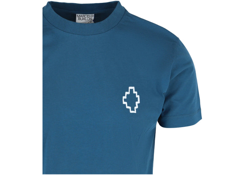 The Marcelo Burlon Tempra Cross Crewneck T-shirt Blue is now available at Side Kicks!