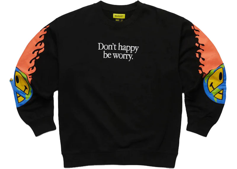 The Market Smiley Earth On Fire Crewneck Black is now available at Side Kicks!