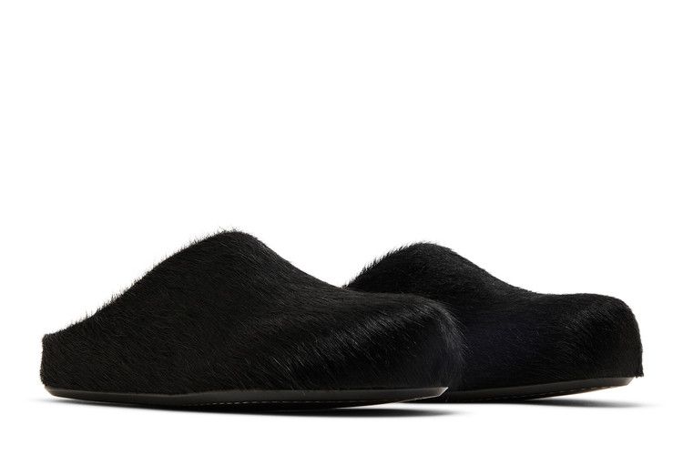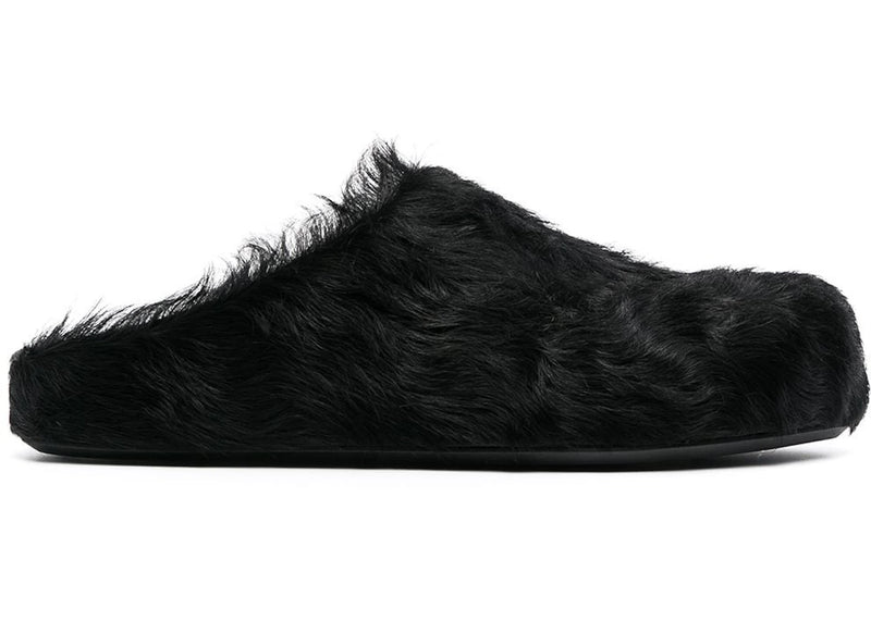 Marni Long Hair Calfskin Fussbett Sabot Mule Black (Women's)
