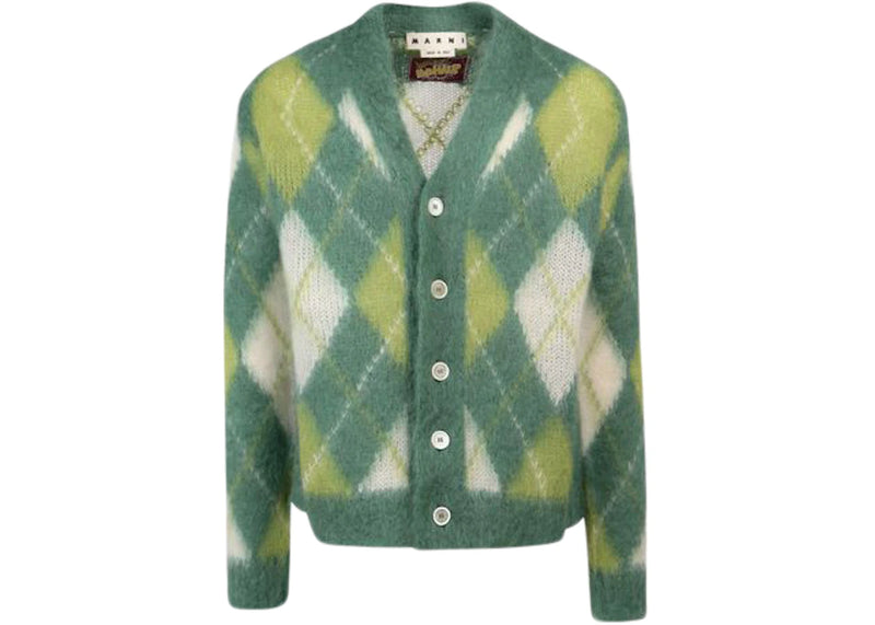 Marni Mohair Argyle Cardigan Green