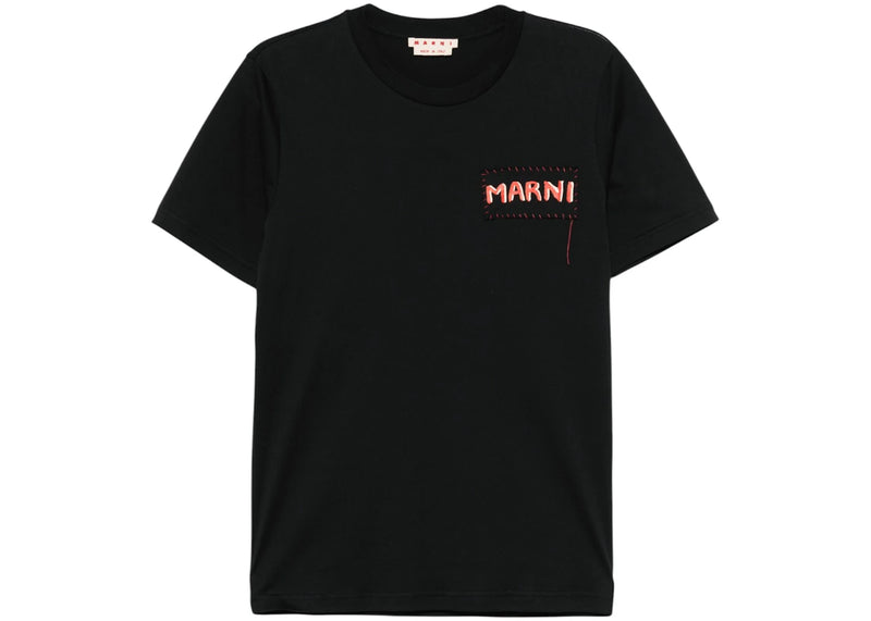 The Marni Stitched-On Logo T-shirt Black is now available at Side Kicks!