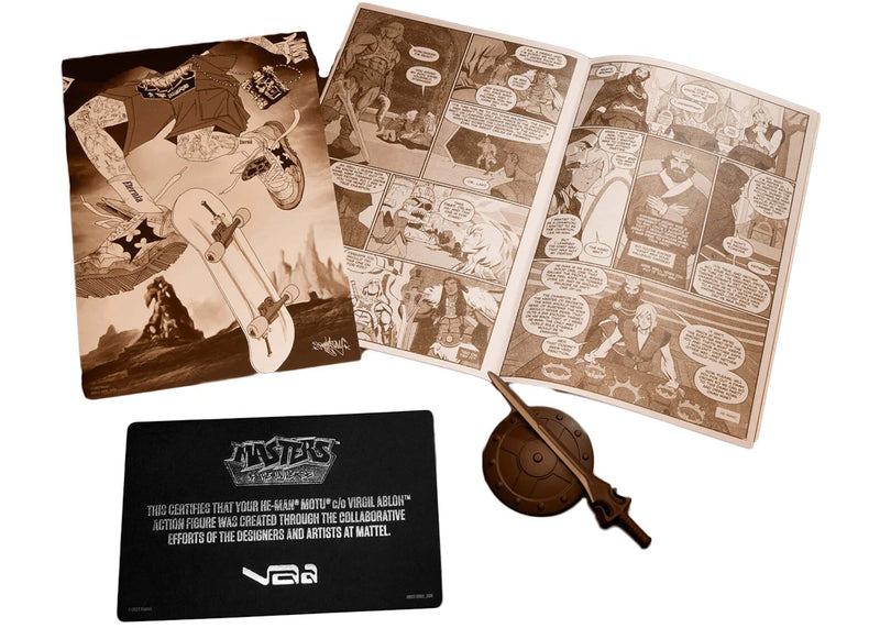 The Mattel Virgil Abloh x Masters of the Universe He-Man Collector Action Figure is a figure whose design was reimagined by late American fashion designer Virgil Abloh.    This version...