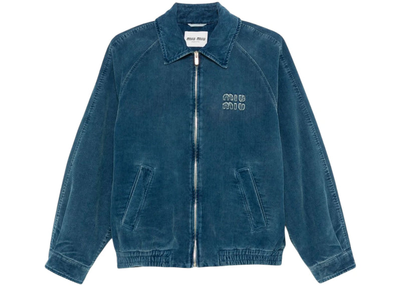 The Miu Miu Washed Corduroy Jacket Azzurro is now available at Side Kicks!