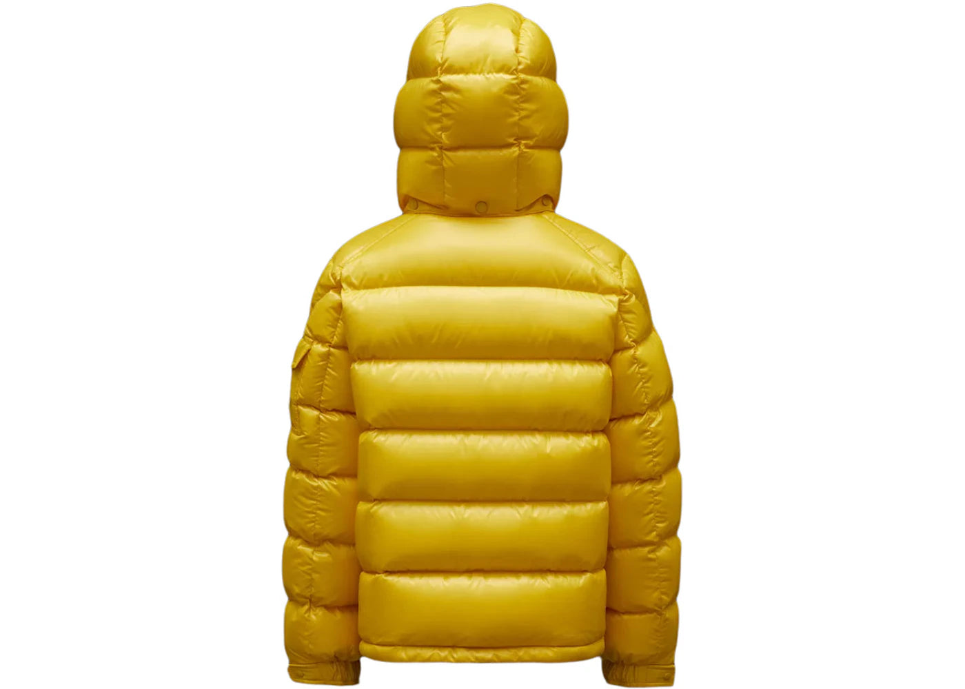 The Moncler Boy's New Maya Short Down Kid's Jacket Mustard Yellow is now available at Side Kicks!