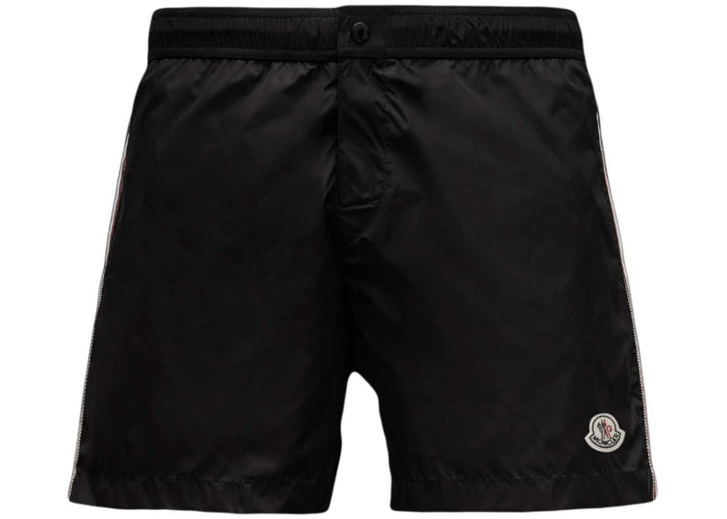 The Moncler Tricolor Side Bands Nylon Swim Shorts Black is now available at Side Kicks!