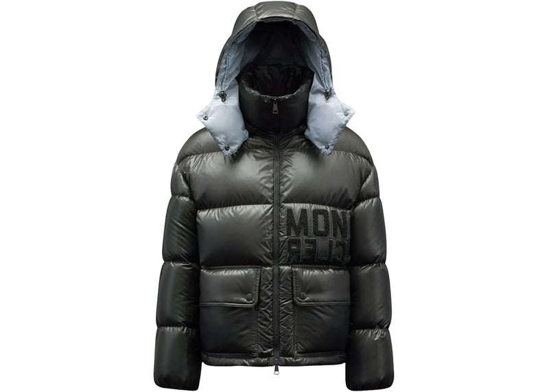 The Moncler Women's Abbaye Short Down Jacket Dark Grey is now available at Side Kicks!