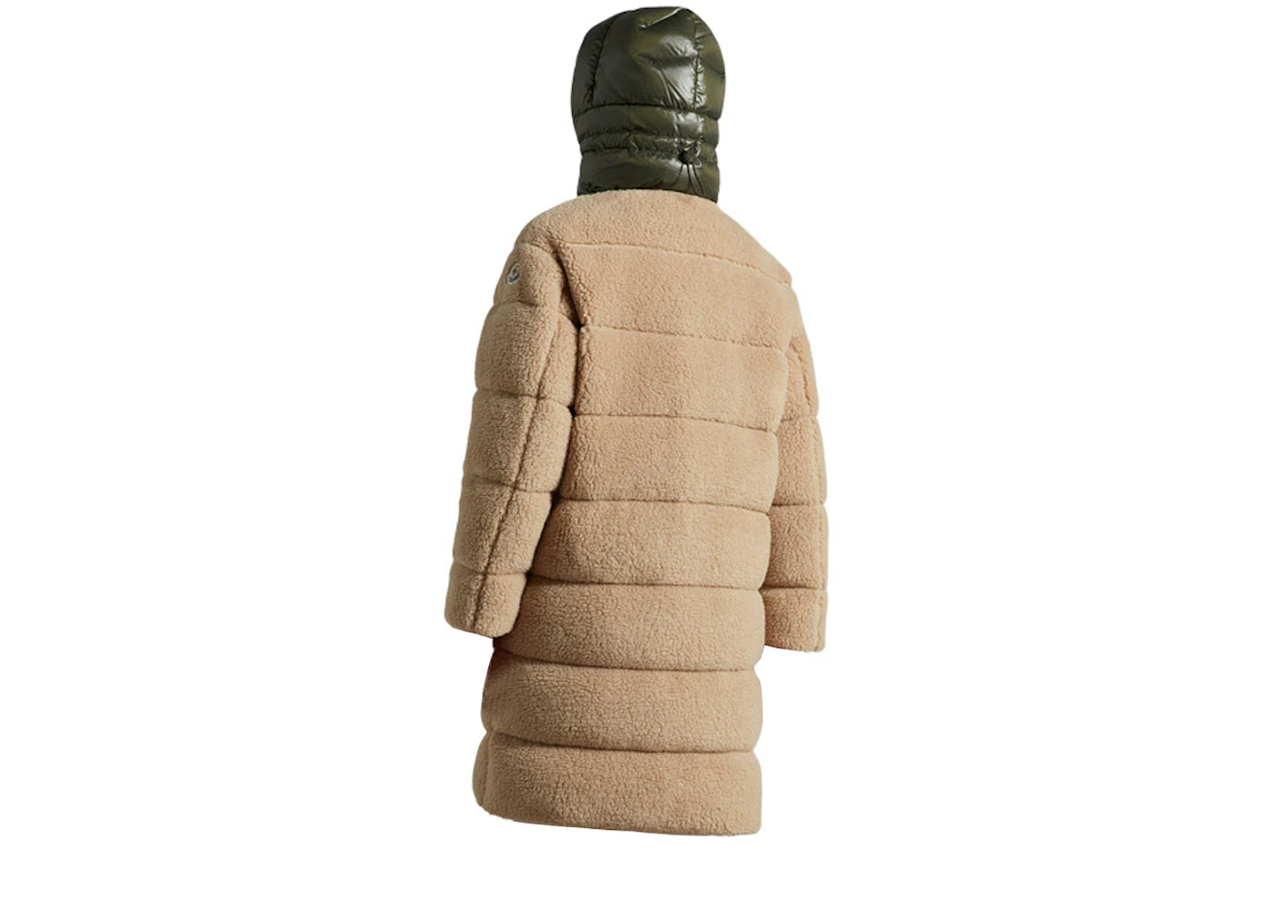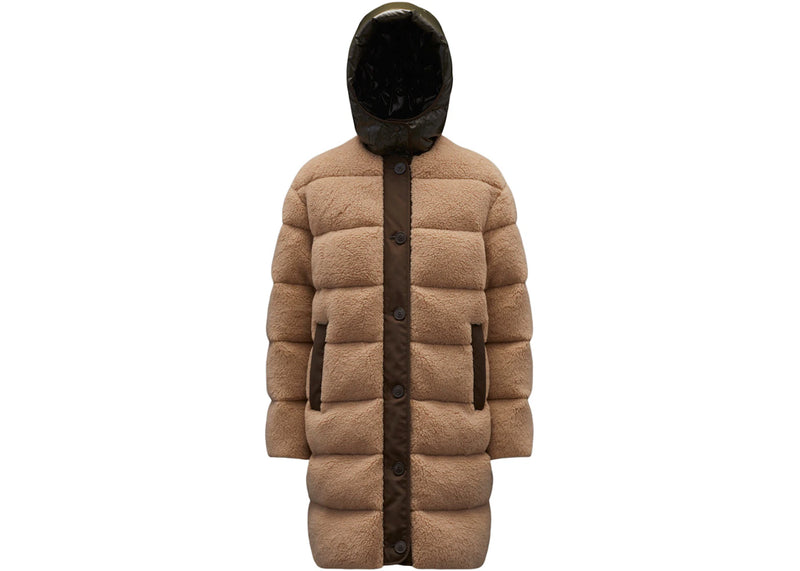 The Moncler Women's Charamillion Long Down Jacket Natural Kakhi Beige is now available at Side Kicks!