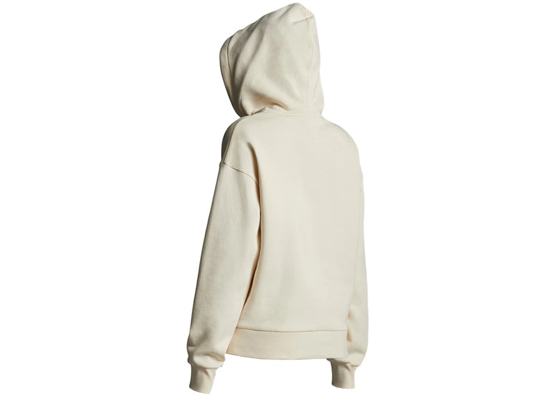 The Moncler Women's Metallic Spray Effect Logo Print Hoodie Pearled Ivory is now available at Side Kicks!