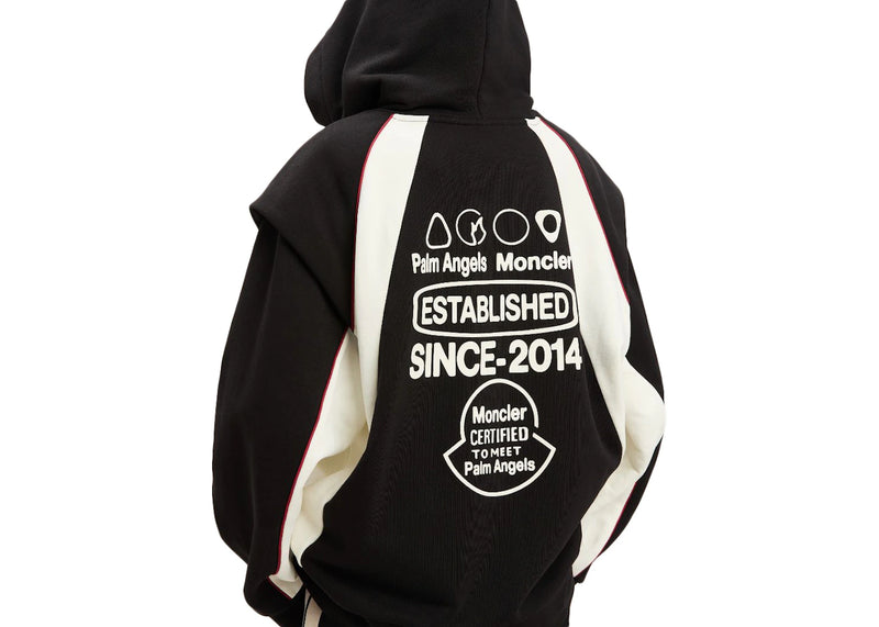 The Moncler x Palm Angels Crest Hoodie Black/White is now available at Side Kicks!