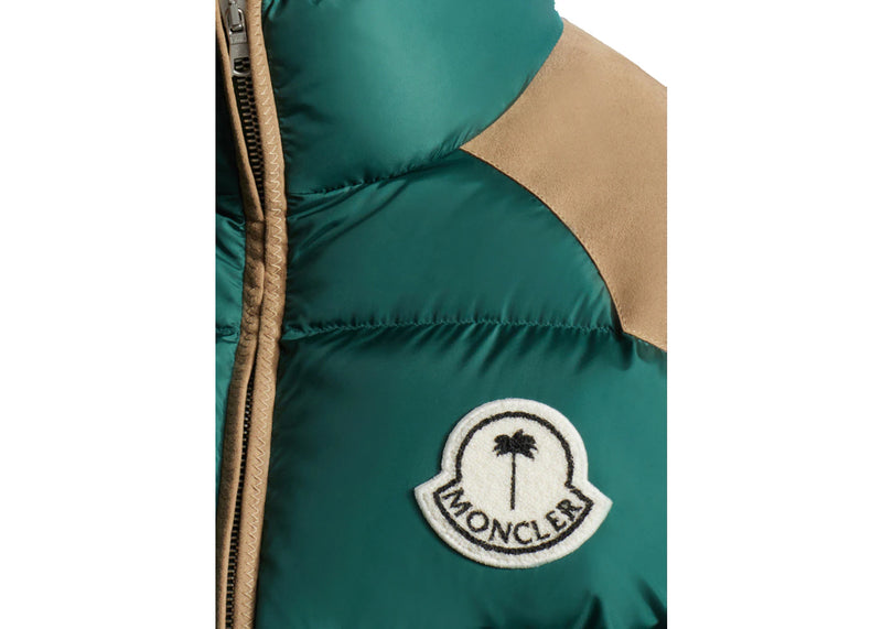 The Moncler x Palm Angels Kelsey Short Down Jacket Forest Green is now available at Side Kicks!