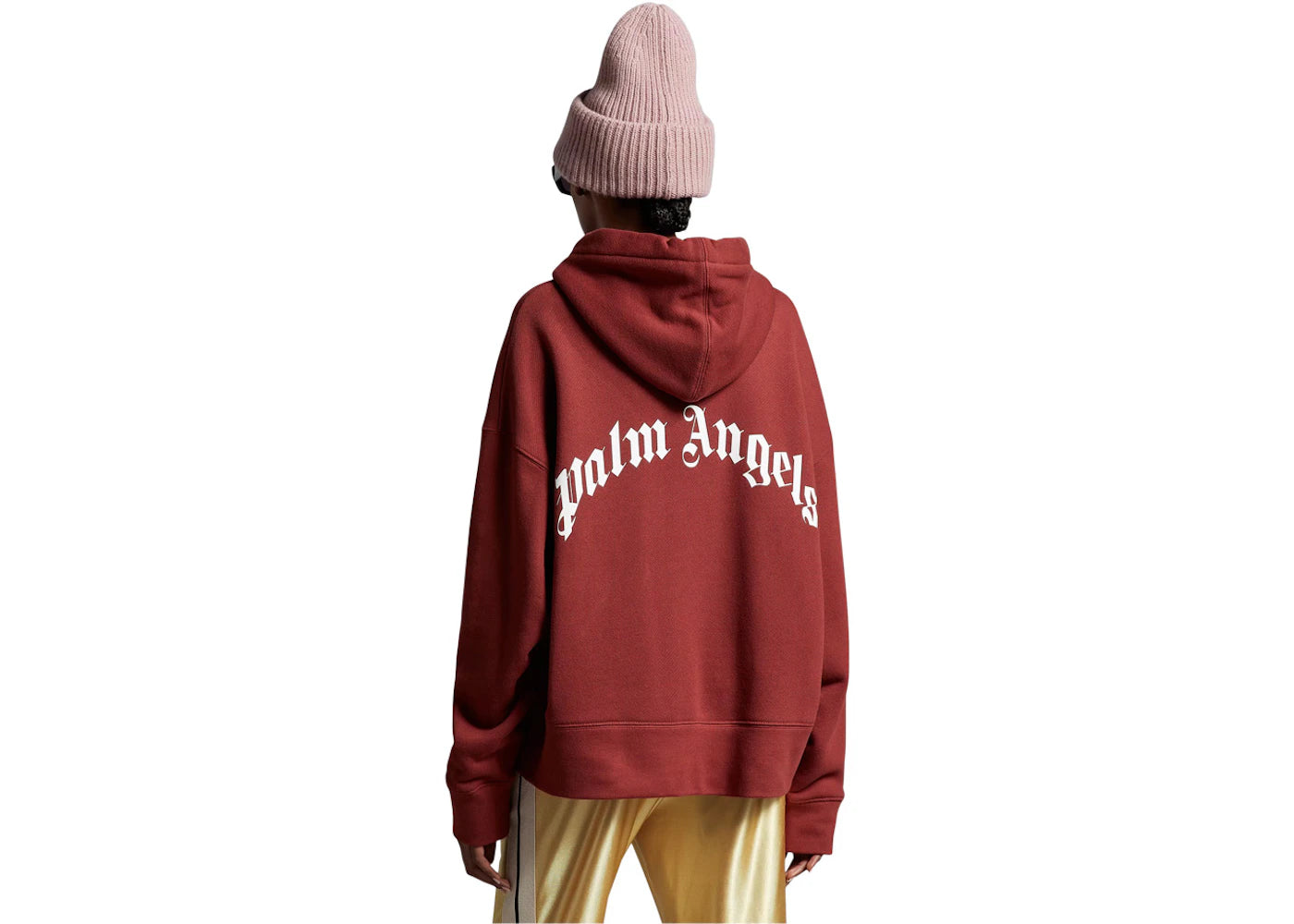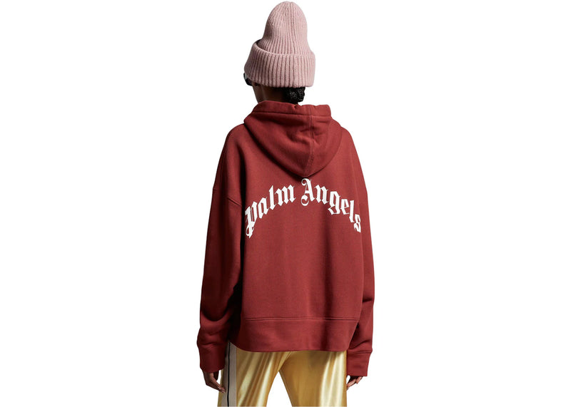 The Moncler x Palm Angels Logo Hoodie Burgundy is now available at Side Kicks!