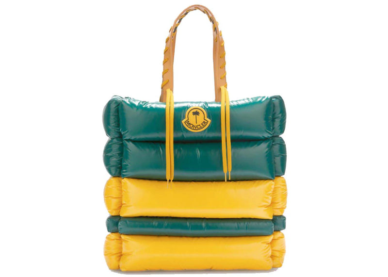 The Moncler x Palm Angels Tote Bag Green/Yellow is now available at Side Kicks!