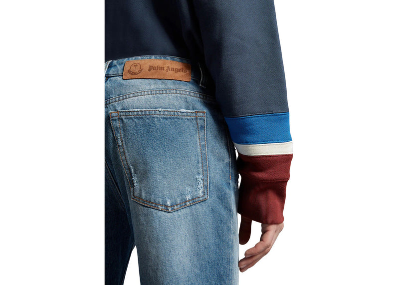 The Moncler x Palm Angels Vintage-Effect Jeans Ocean Blue is now available at Side Kicks!