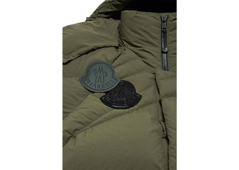 The Moncler x Pharrell Chestnut Short Down Jacket Dark Green is now available at Side Kicks!
