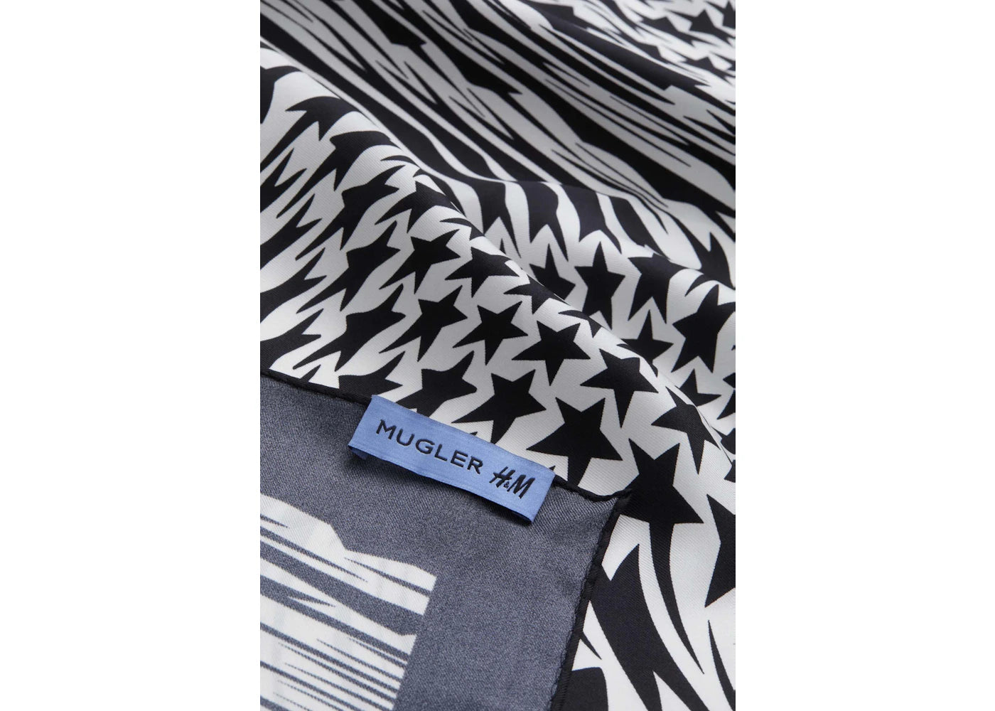 The Mugler H&M Swirling-Star Silk Scarf White/Patterned is now available at Side Kicks!
