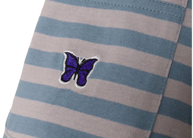 Needles S/S Crew Neck Stripe Jersey Tee Blue Grey