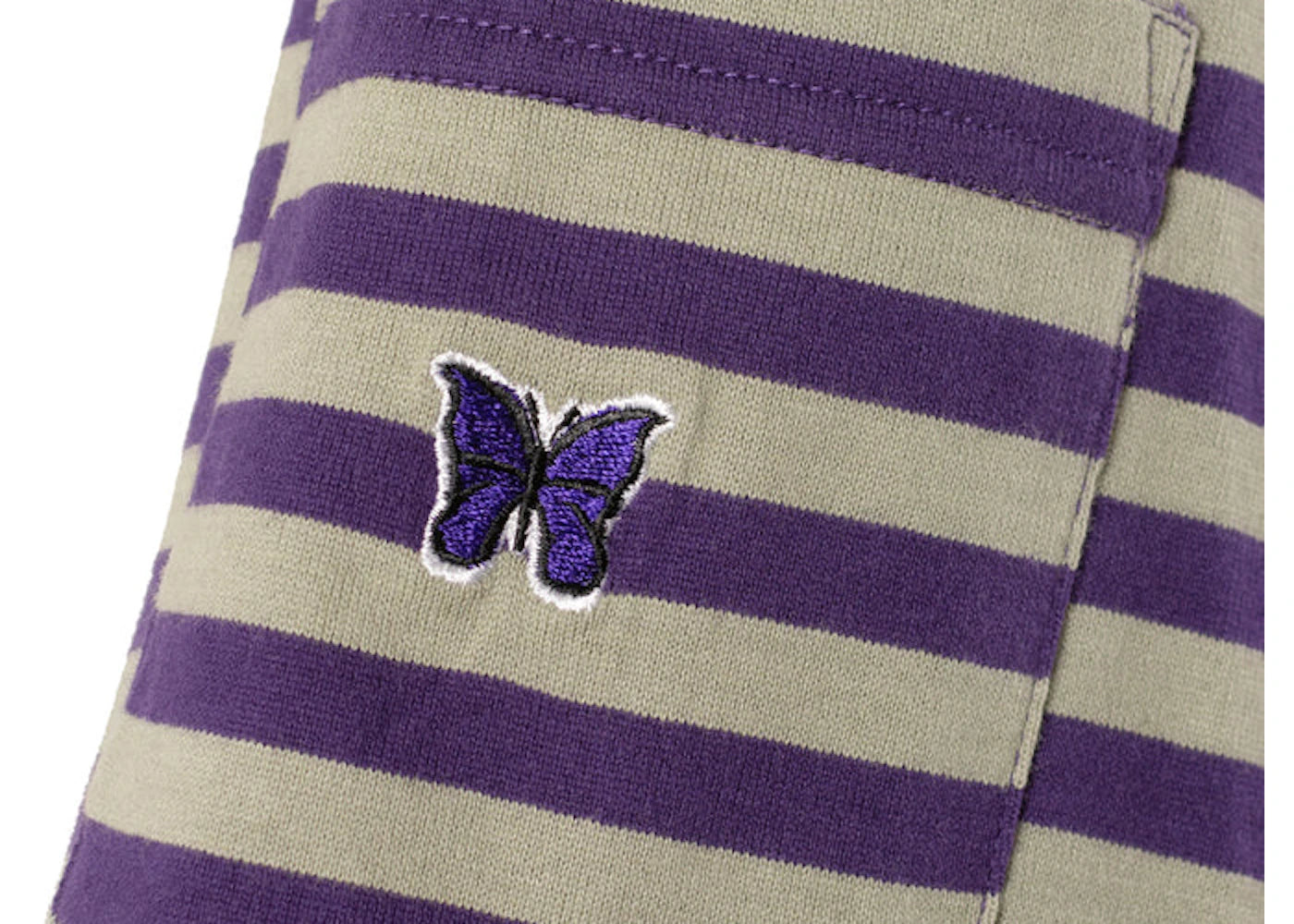Needles S/S Crew Neck Stripe Jersey Tee Purple Khaki