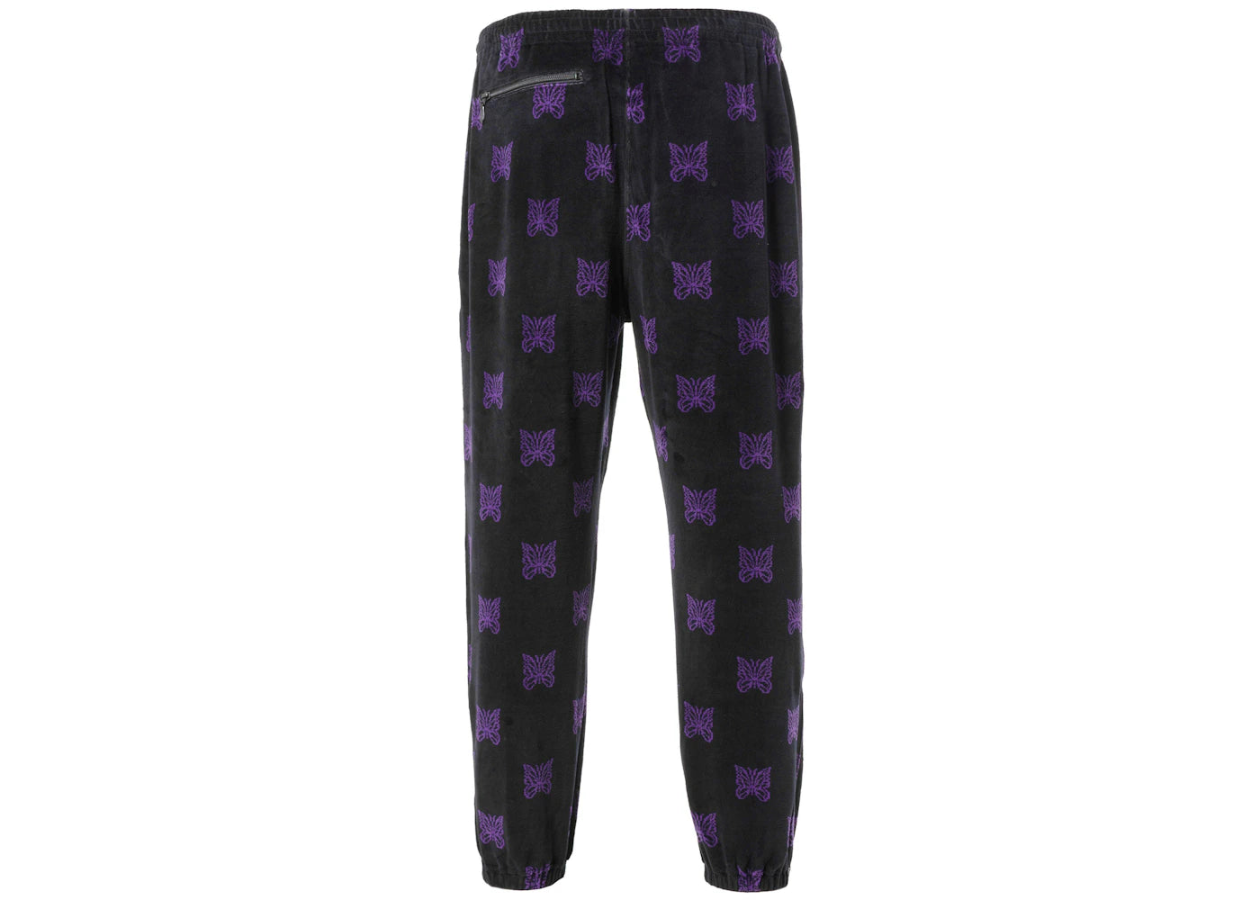 The Needles Velour Papillon Zipped Track Pants Black Purple is now available at Side Kicks!