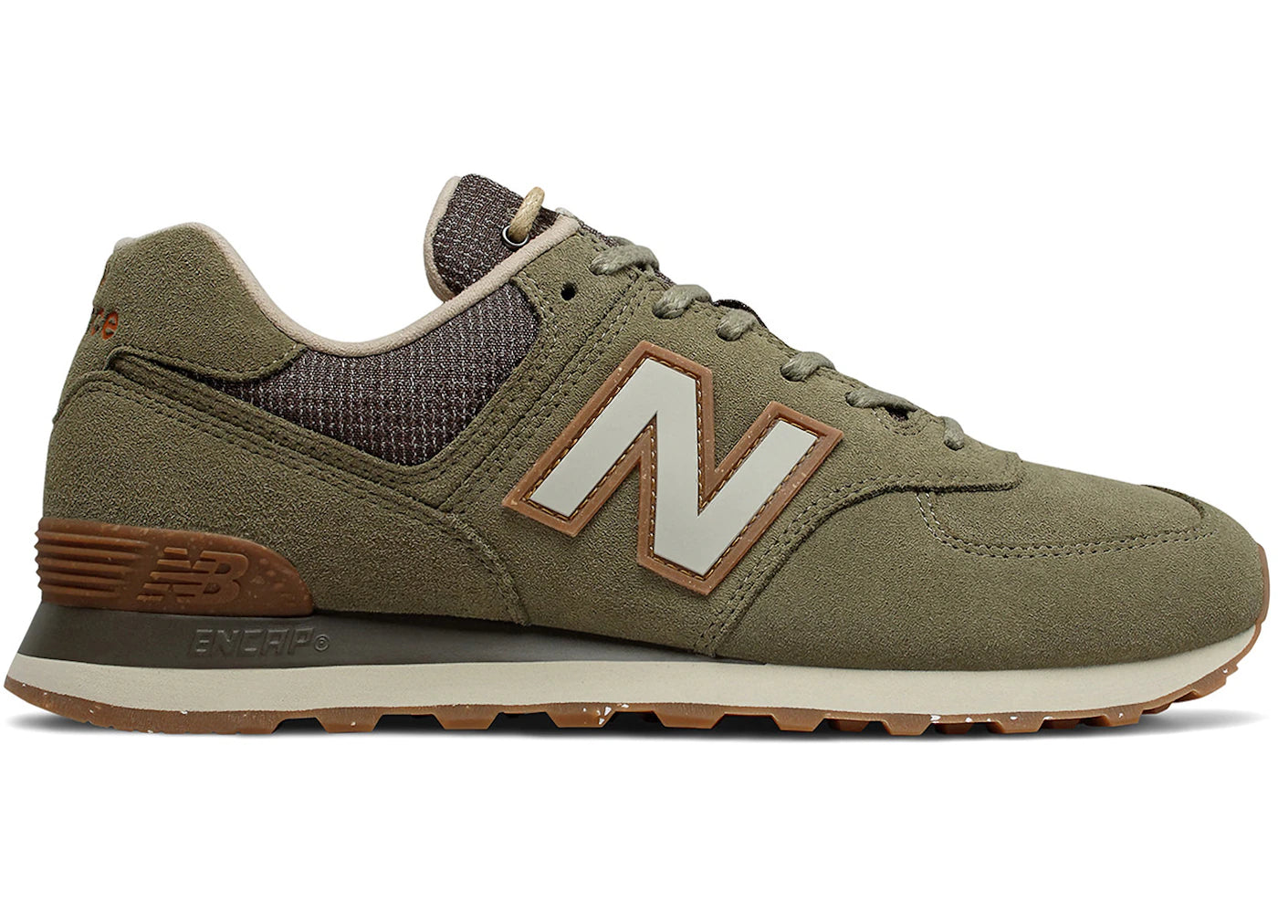 The New Balance 574 Premium Outdoors Covert Green is now available at Side Kicks!