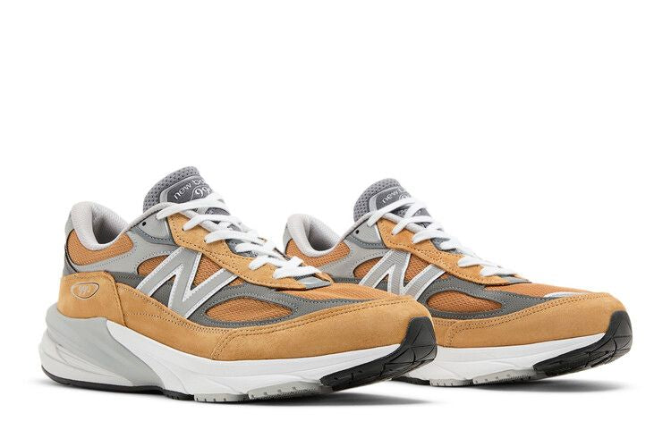 The New Balance 990v6 MiUSA Workwear Grey features a tannish-orange mesh upper with dark-gray perforated leather overlays and suede accents at the eyestays. The ENCAP midsole combines FuelCell foam for...