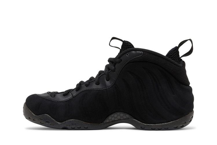 The Nike Air Foamposite One Dream A World Black features a two-tone design with black and white molded polyurethane construction. Suede accents on the collar and eye stay complement the...