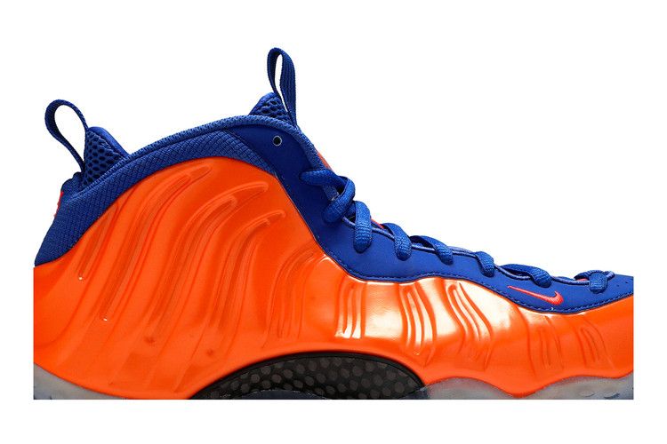 The Air Foamposite One Knicks features a vibrant blue and orange colorway inspired by the New York Knicks. The upper is constructed from durable foamposite material for comfort and support, while the translucent outsole adds a distinctive design element. Released on November 26, 2014, the Air Foamposite One Knicks is available now at Side Kicks.