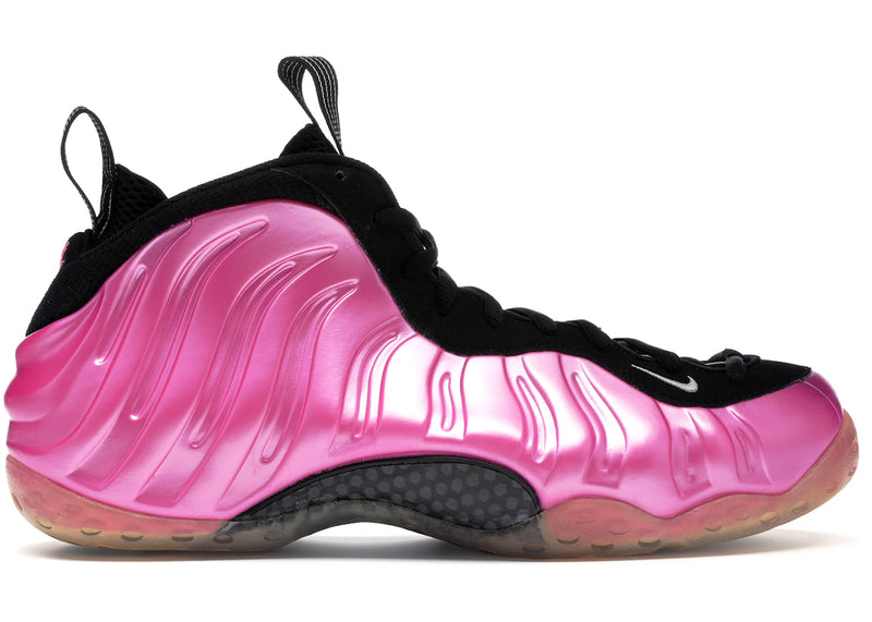 The Nike Air Foamposite One Pearlized Pink features a black suede upper with a white Nike swoosh on the toe. A carbon fiber shank plate in the heel provides support...