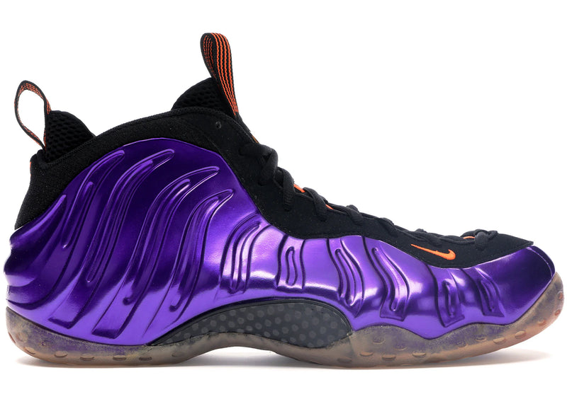 The Nike Air Foamposite One Phoenix Suns features an electro-purple Foamposite upper with a black nubuck overlay and a total orange Swoosh. The quarter panels combine black outsoles with purple...