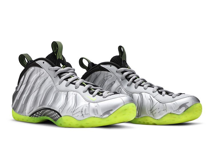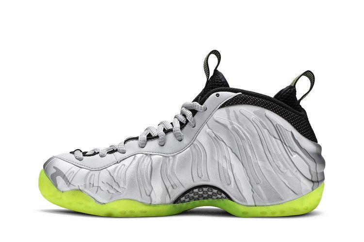 The Nike Air Foamposite One Silver Volt Camo features a molded Foamposite upper made from polyurethane for a secure fit. The silver upper includes 3M reflective details on the collar...