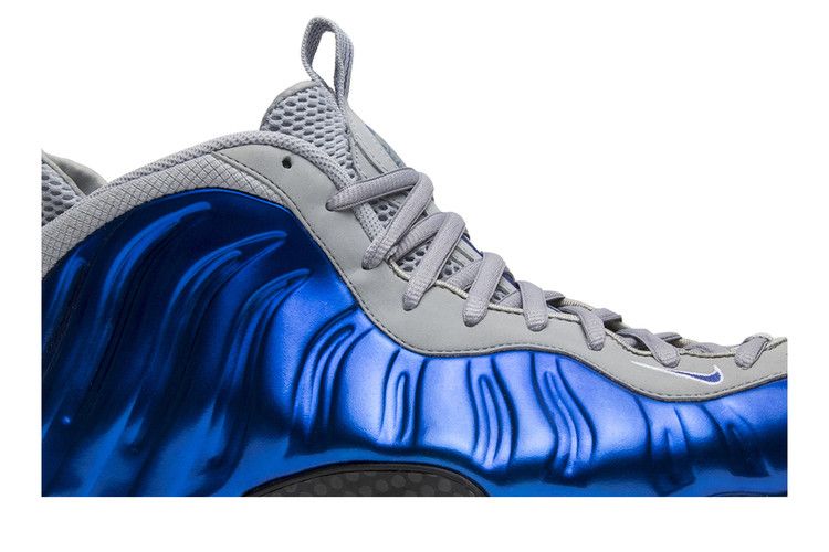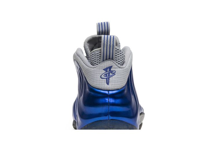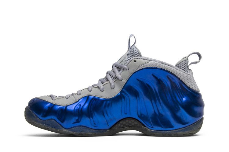 The Nike Air Foamposite One Sport Royal features a molded Foamposite upper in Sport Royal, paired with grey leather and a blue embroidered Swoosh. The tongue includes a "1 Cent"...