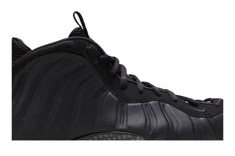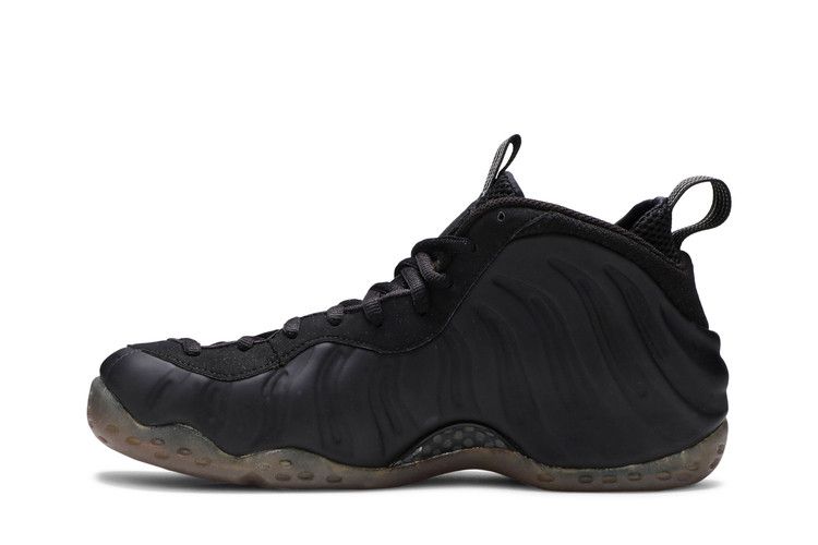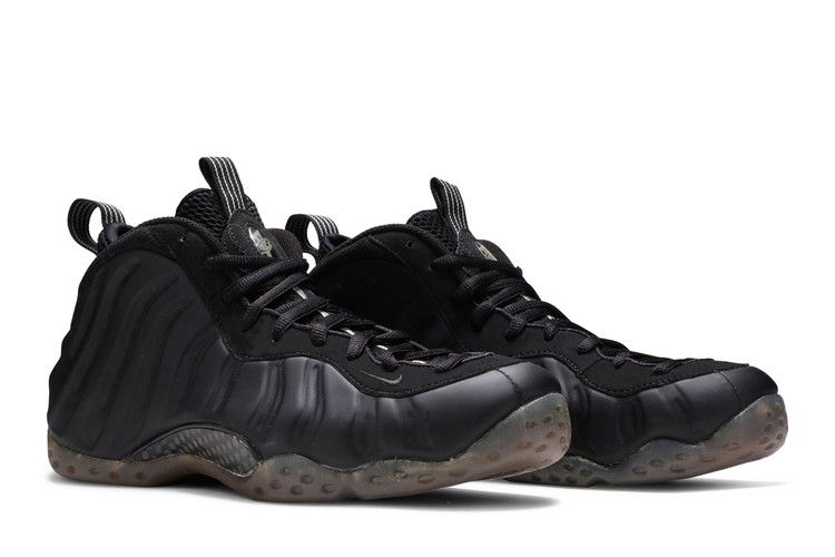 The Nike Air Foamposite One Fighter Jet features a black, Hyper Red, dark gray, and white color palette. The upper is made of durable Foamposite material, while the midsole includes Nike Air cushioning for responsiveness. A carbon fiber shank plate adds stability, and the translucent rubber outsole improves traction. Pull straps on the tongue and heel ensure a secure fit. The design incorporates matte and glossy black with gray and white accents, inspired by fighter jets. Released on February 9, 2013, the Nike Air Foamposite One Fighter Jet is available now at Side Kicks.