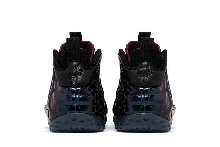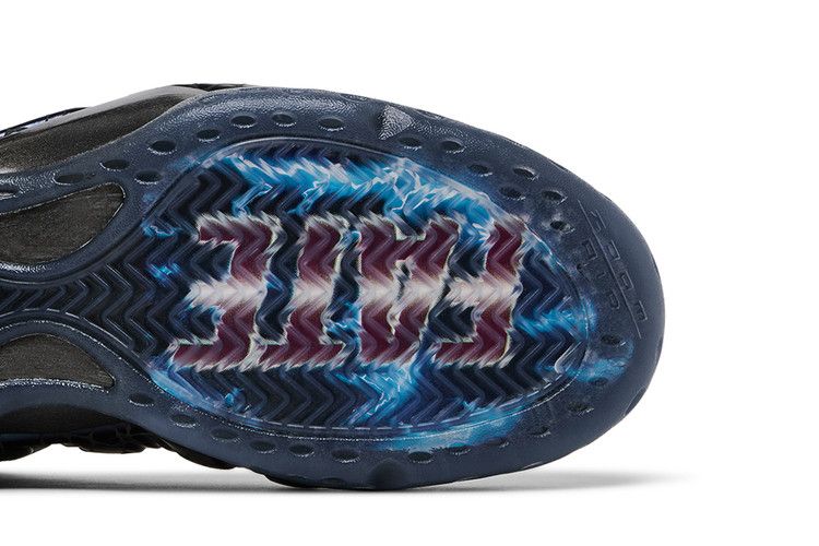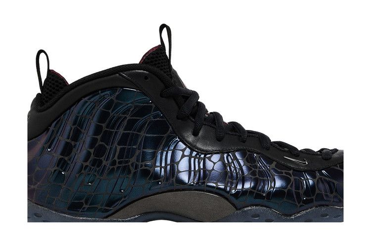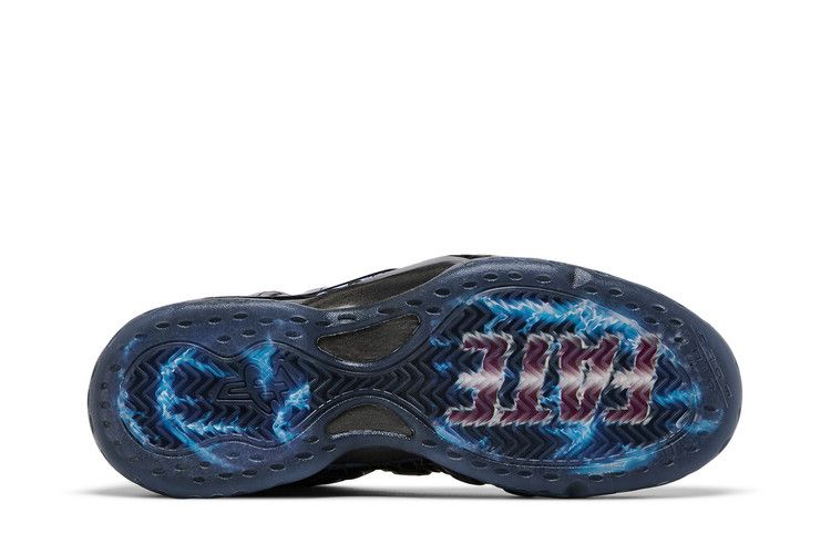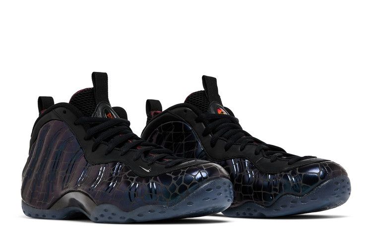 The Nike Air Foamposite One Tekken 8 Kazuya Mishima features a leather and polyurethane upper with metallic dark blue, gray, and purple hues in a cracked cement finish. Black leather...