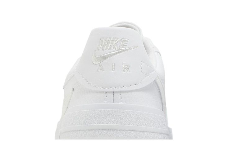 The Nike Air Force 1 PLT.AF.ORM Triple White (Women's) features a tumbled leather upper with layered paneling on the lateral collar and cut-out Swooshes. Smooth leather accents the tongue, Swooshes,...
