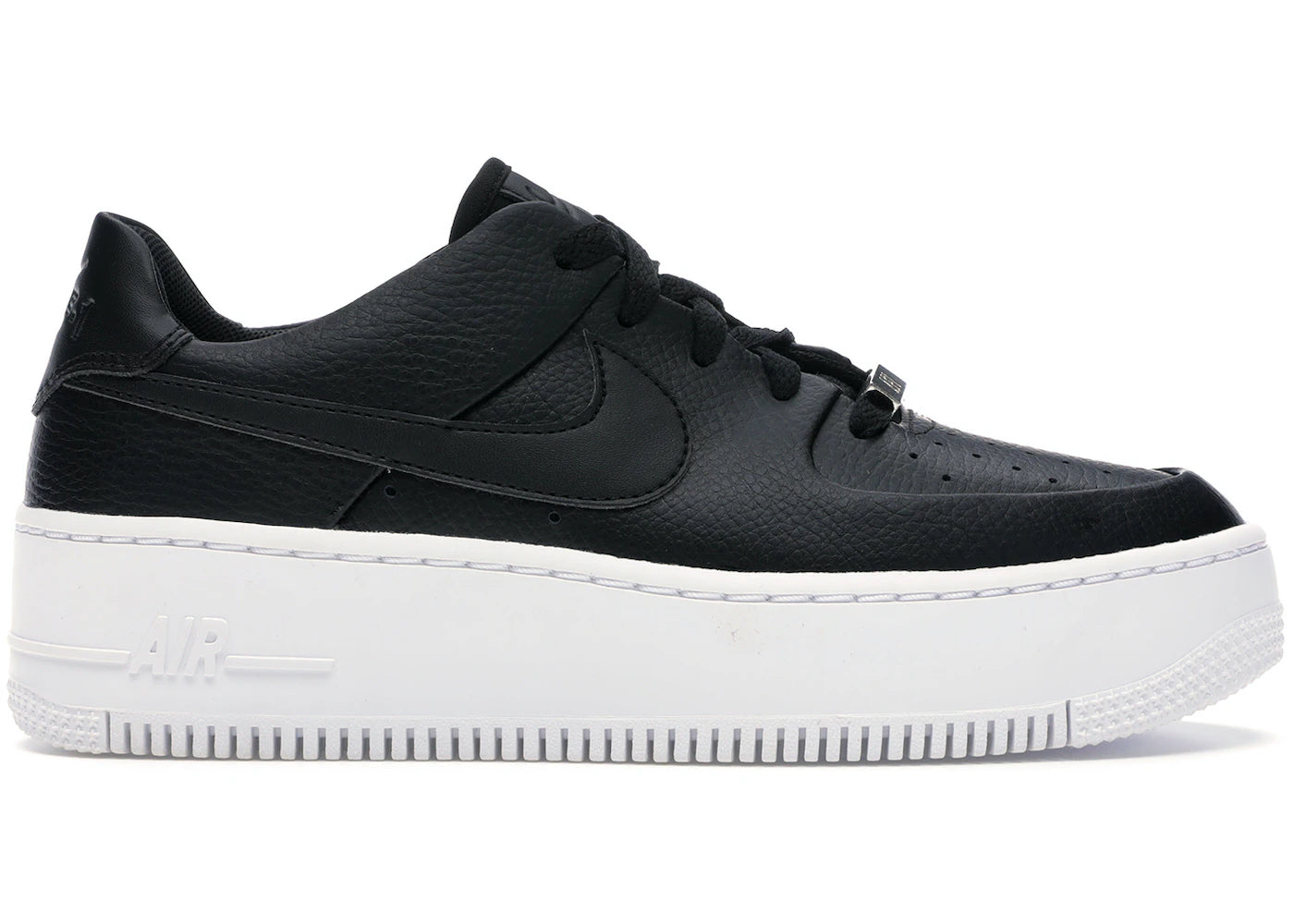 The Nike Air Force 1 Sage Low Black White W features a black leather upper with white Swoosh, heel tab, and midsole accents. Its platform sole updates the classic silhouette, while the padded collar and insole ensure comfort. Constructed with durable materials, it blends timeless style with modern details. Released on October 5, 2018, the Nike Air Force 1 Sage Low Black White W is available now at Side Kicks.