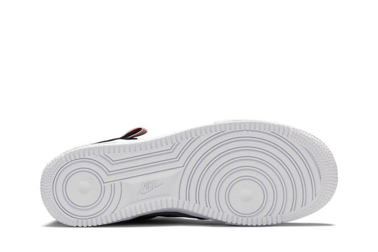 The Nike Air Force 1 Type Black Gum features a deconstructed design with a black leather and synthetic upper. It includes a semi-translucent rear panel, water-resistant toe reinforcement, and a durable gum rubber outsole. An adjustable heel strap with Velcro ensures a secure fit.