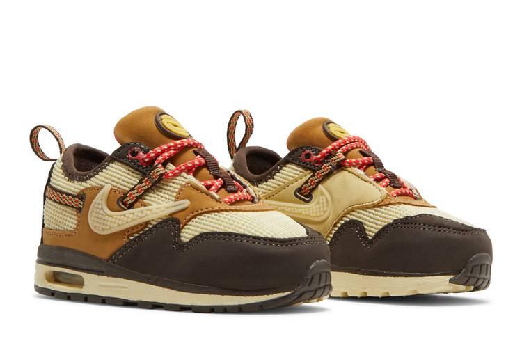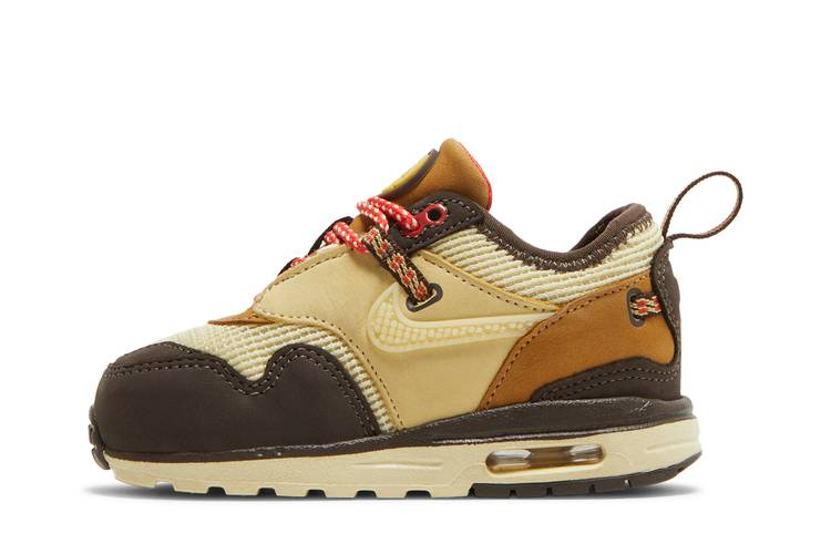 The Nike Air Max 1 Travis Scott Cactus Jack Baroque Brown (TD) is a scaled-down version of the retro runner featuring a utilitarian aesthetic inspired by the ACG Pocket Knife....