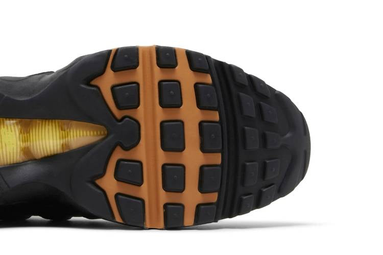The Nike Air Max 95 Icons Yellow Strike features a layered synthetic suede upper with a gradient grey finish and yellow branding accents. It is built on a lightweight polyurethane...