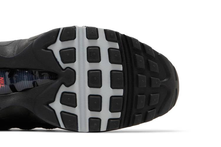 The Nike Air Max 95 Track Red Smoke Grey features a pigmented colorway of Black, Smoke Grey, Anthracite, and Track Red. Inspired by 1990s running aesthetics and the human form,...