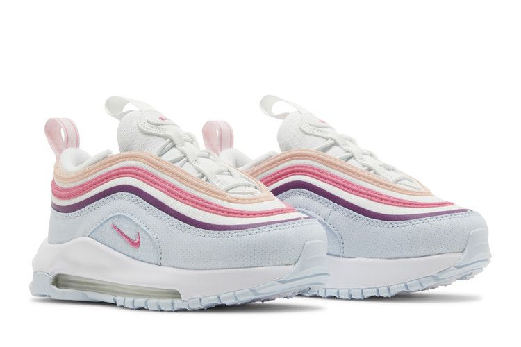 The Nike Air Max 97 Summit White Blue Tint Viotech Pinksicle (TD) is now available at Side Kicks!