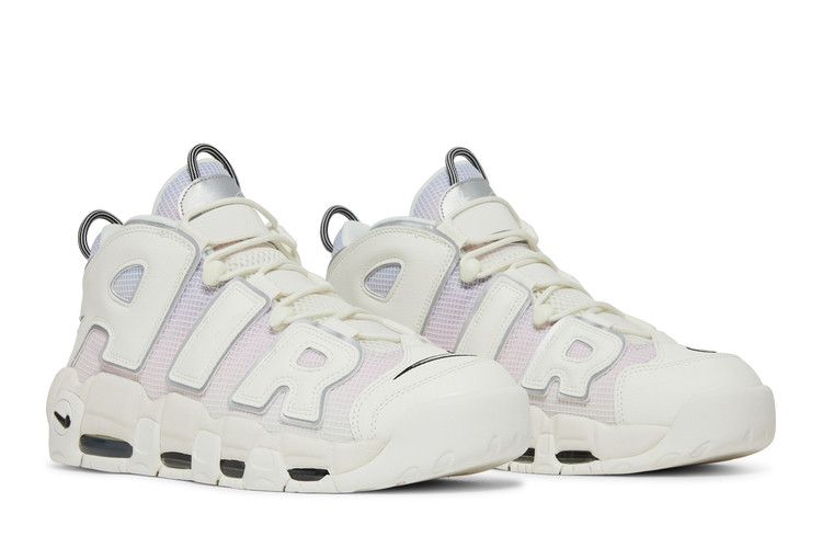 The Nike Air More Uptempo 96 QS Thank You, Wilson (GS) features a high-top silhouette with a mesh upper transitioning from Light Thistle to Pink Foam. Leather Air appliqués in...
