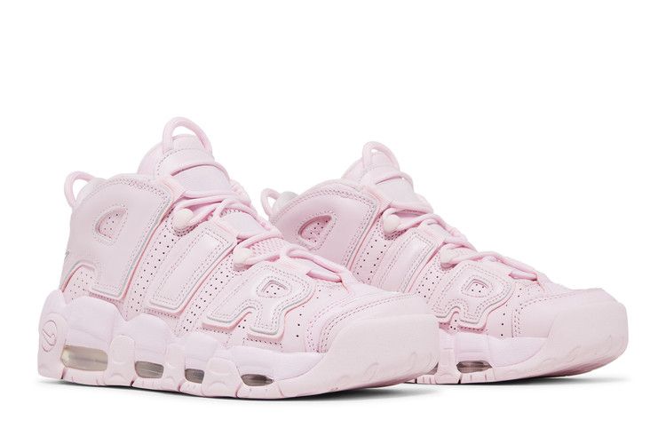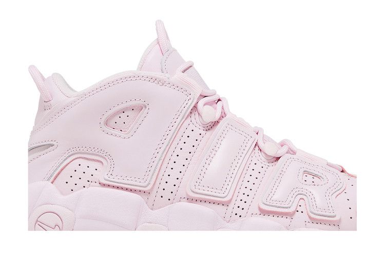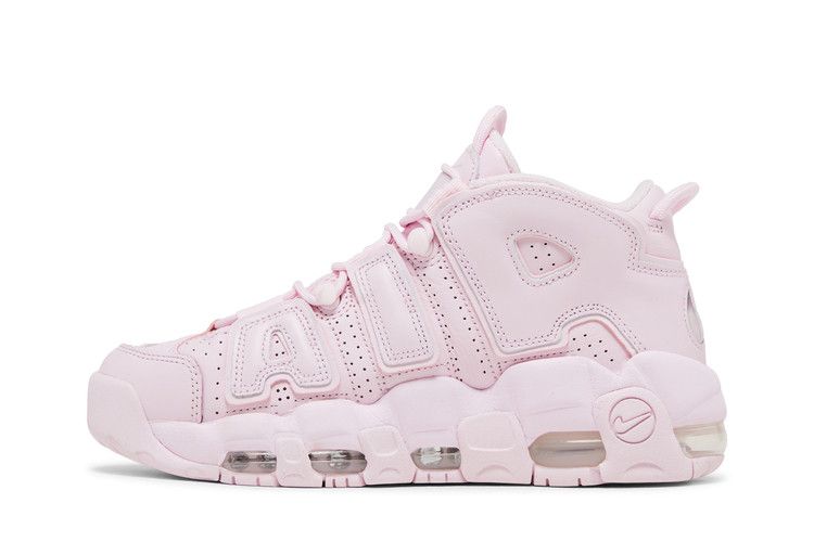 The Nike Air More Uptempo Pink Foam (Women's) features a high-top design with a perforated leather upper and monochrome Pink Foam leather Air appliqués. The sole unit continues the color...