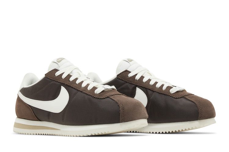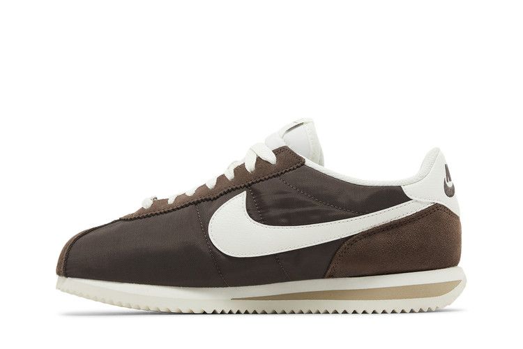 The Nike Cortez Baroque Brown (Women's) features a Baroque Brown, Sail, and khaki colorway. It has a soft foam midsole in Sail with a khaki wedge for cushioning. The rubber...