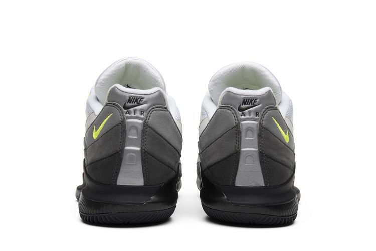 The NikeCourt Vapor RF Air Modell 95 Neon features a breathable mesh upper with layered Air Max 95-inspired design in black-to-gray gradient. Neon green accents highlight the silhouette, while Zoom...