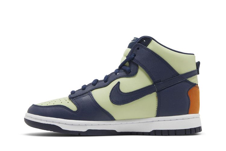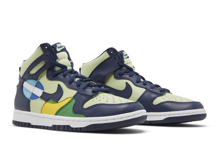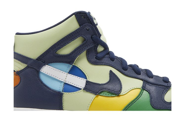 The Nike Dunk High See Through Pistachio Midnight Navy (Women's) features a pistachio leather upper with midnight navy overlays and Swoosh branding. The design reveals pops of bright green, yellow,...