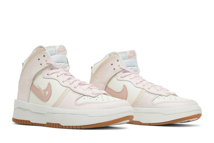 The Nike Dunk High Up Sail Light Soft Pink (W) features a Sail, Light Soft Pink, Pearl White, and Pink Oxford color palette. The upper combines leather and suede for...