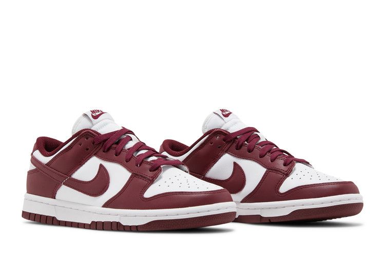 The Nike Dunk Low Bordeaux (W) has a Sail leather upper with Dark Beetroot overlays and Swooshes. It includes a woven Nike Air tongue label and matching sole for a...